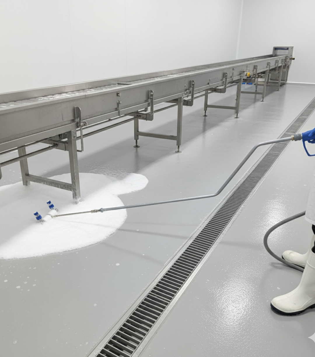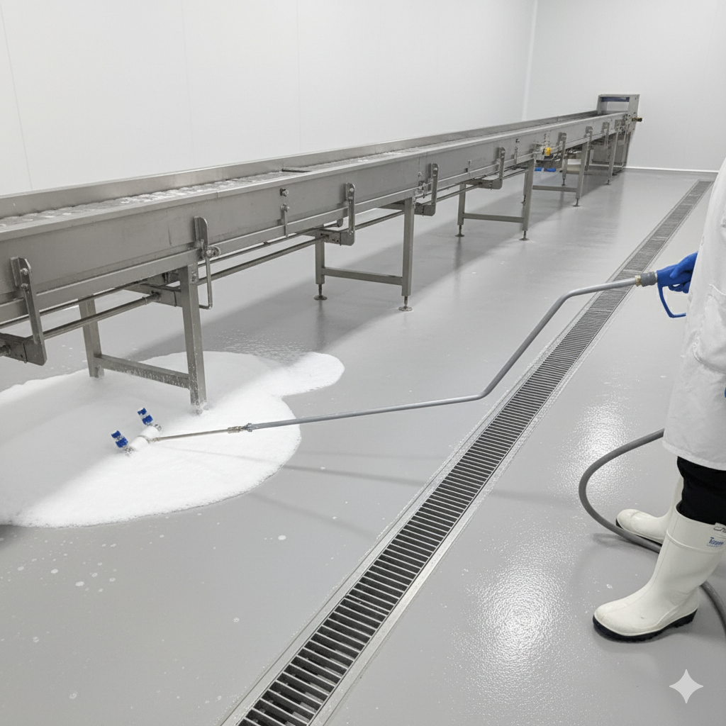 The Arcus Roller Washdown Lance makes it easy to clean under fixed equipment in food production facilities.